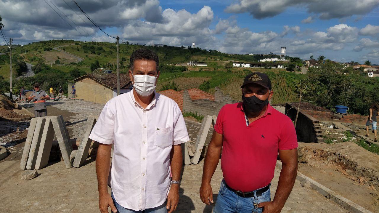 O prefeito Neno Freitas, ao lado do secretário de Infraestrutura, Francisco Batista (Fan), esteve no Alto do São Simião acompanhando o andamento das obras do programa Minha Cidade Linda, que estão em ritmo acelerado e que contemplará o município com a pavimentação de 2,5 quilômetros de extensão em vias urbanas com um total de 17 ruas.