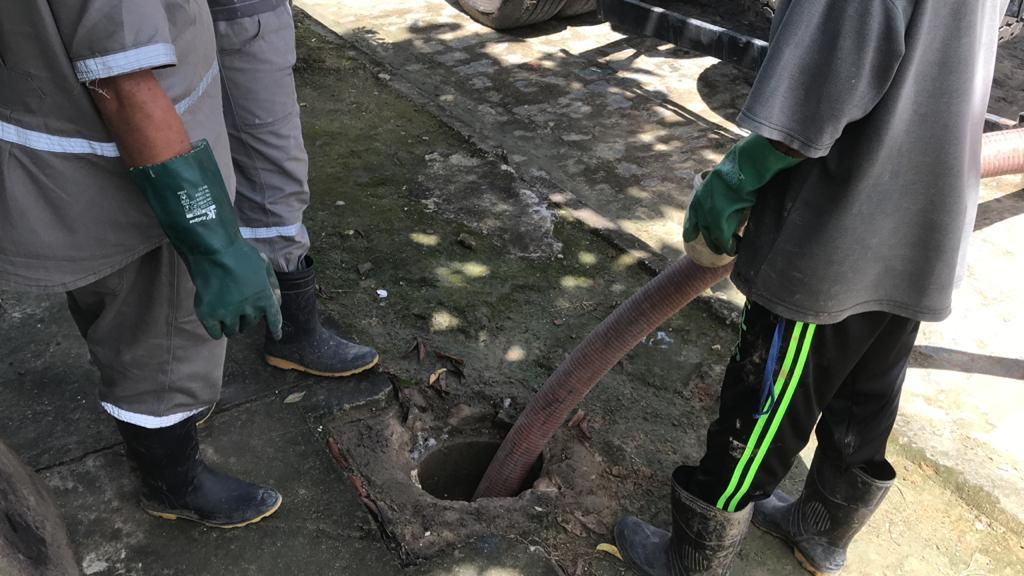 A Prefeitura, por meio da Secretaria de Infraestrutura, realizou mais uma importante ação de desobstrução da rede de esgoto. Com o auxílio de um caminhão de hidrojato, a frente de trabalho ocorreu nos Platores I, II e III e nas escolas municipais Democrito José e Joselio Efigênio de Vasconcelos.