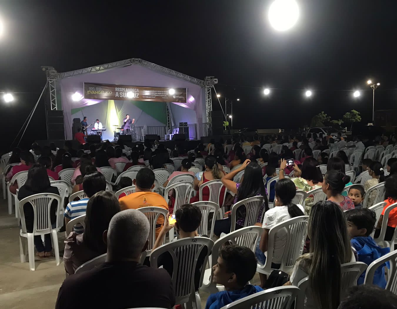 Uma multidão de fiéis se reuniu, nesta terça-feira (30), na Praça José Gomes de Freitas, no município, para cultuar a Deus e celebrar o Dia do Evangélico em um grande evento promovido pela Prefeitura. A programação que contou com diversas atrações da vertente gospel, como: a pastora Edinilza Toledo, o pastor Adriano Oliveira, Banda Átrios, Samuel Barboza e Giovana e Banda, contou com um grande palco e cadeiras que tornou a celebração mais confortável e segura para todos os presentes.