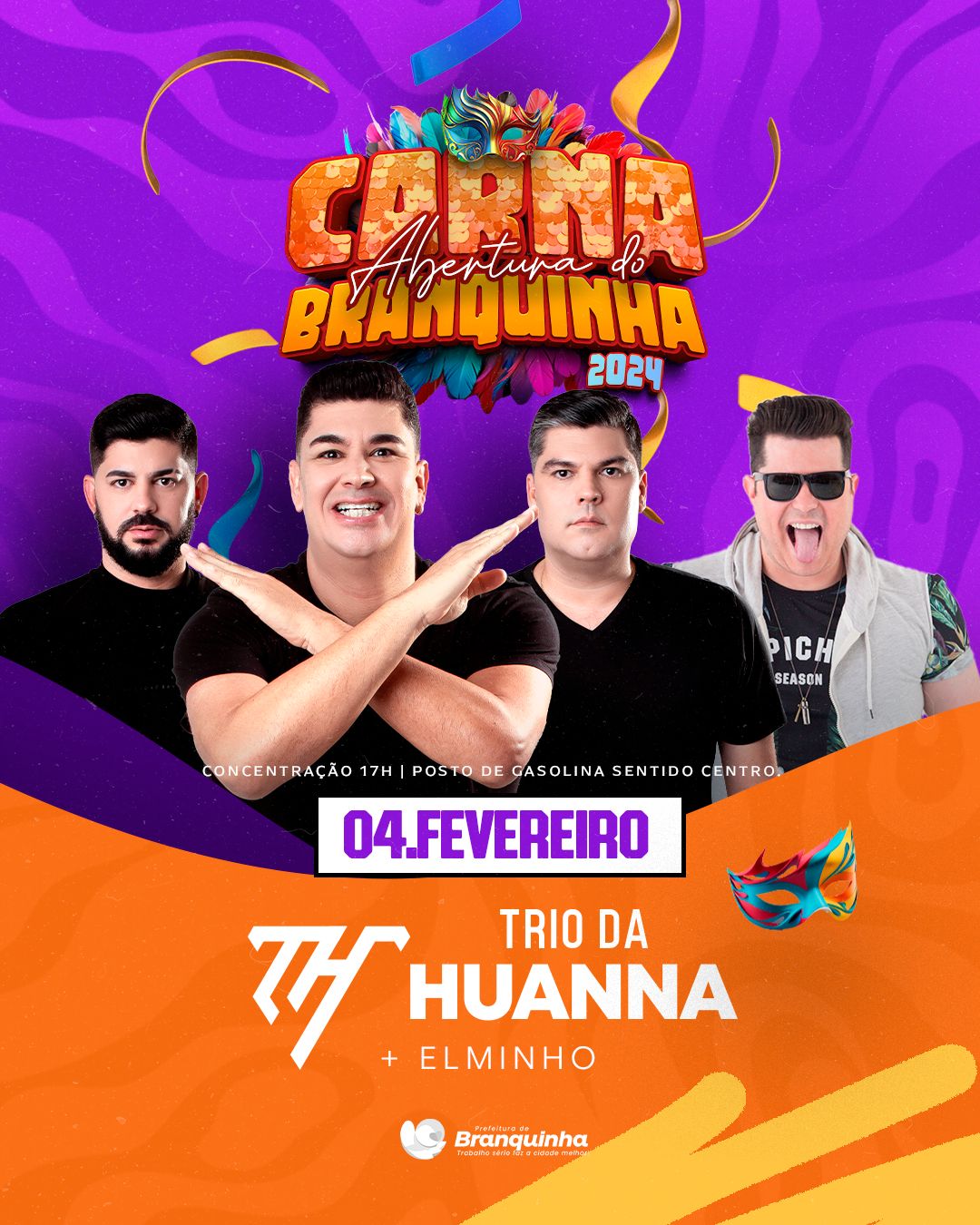 O carnaval está batendo à porta, e para celebrar o período mais colorido do ano, vem aí o Carna Branquinha 2024. Com uma programação especial, a prefeitura anunciou a abertura da festa que promete arrastar os foliões com muita alegria e animação ao som de Trio da Huanna e Elminho no domingo, 4 de fevereiro.