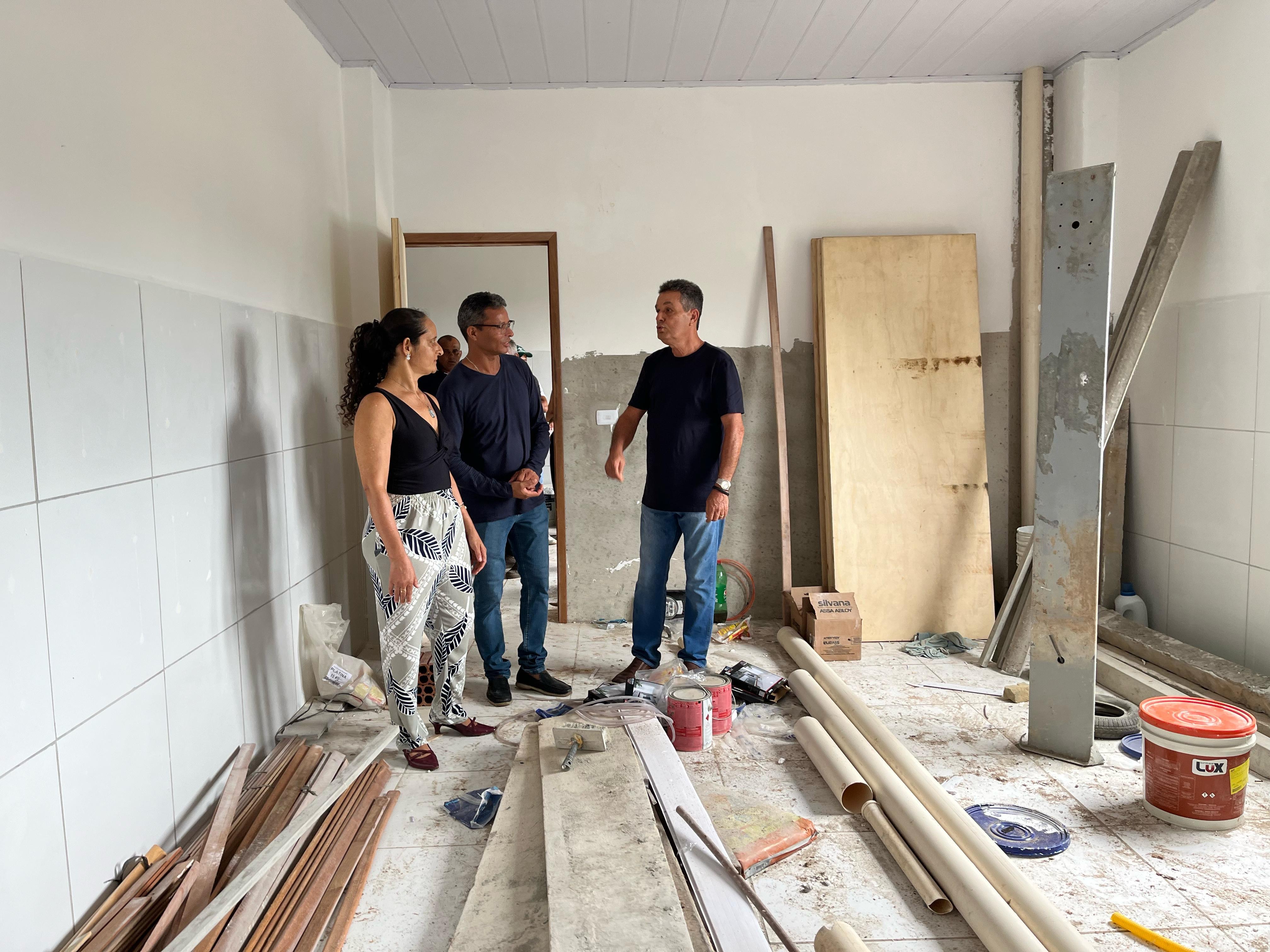 O secretário de educação, Ednaldo Firmino, a diretora da escola, Jaciara Menezes, o presidente da Câmara, Françuar e o vereador Frank Eloi, também acompanharam a visita às obras.