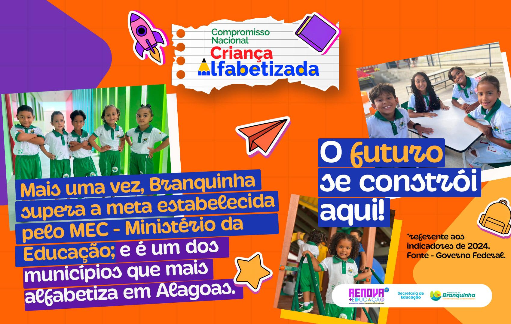Na última semana, o Ministério da Educação (MEC), divulgou o ranking de alfabetização dos alunos até o final do 2º ano do ensino fundamental. O indicador aponta que 79,89% das crianças foram alfabetizadas na idade certa em 2024 em Branquinha; o que coloca o município como um dos que mais avança em Alagoas.