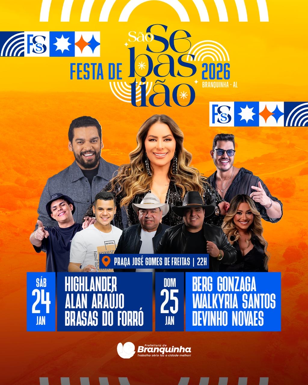 Em janeiro, o município de Branquinha celebra dias de fé e devoção em honra ao padroeiro do município, São Sebastião. E paralelo a programação religiosa, a prefeitura acaba de anunciar a grade artística que fará a alegria dos branquinhenses e seus visitantes, nos dias 24 e 25.