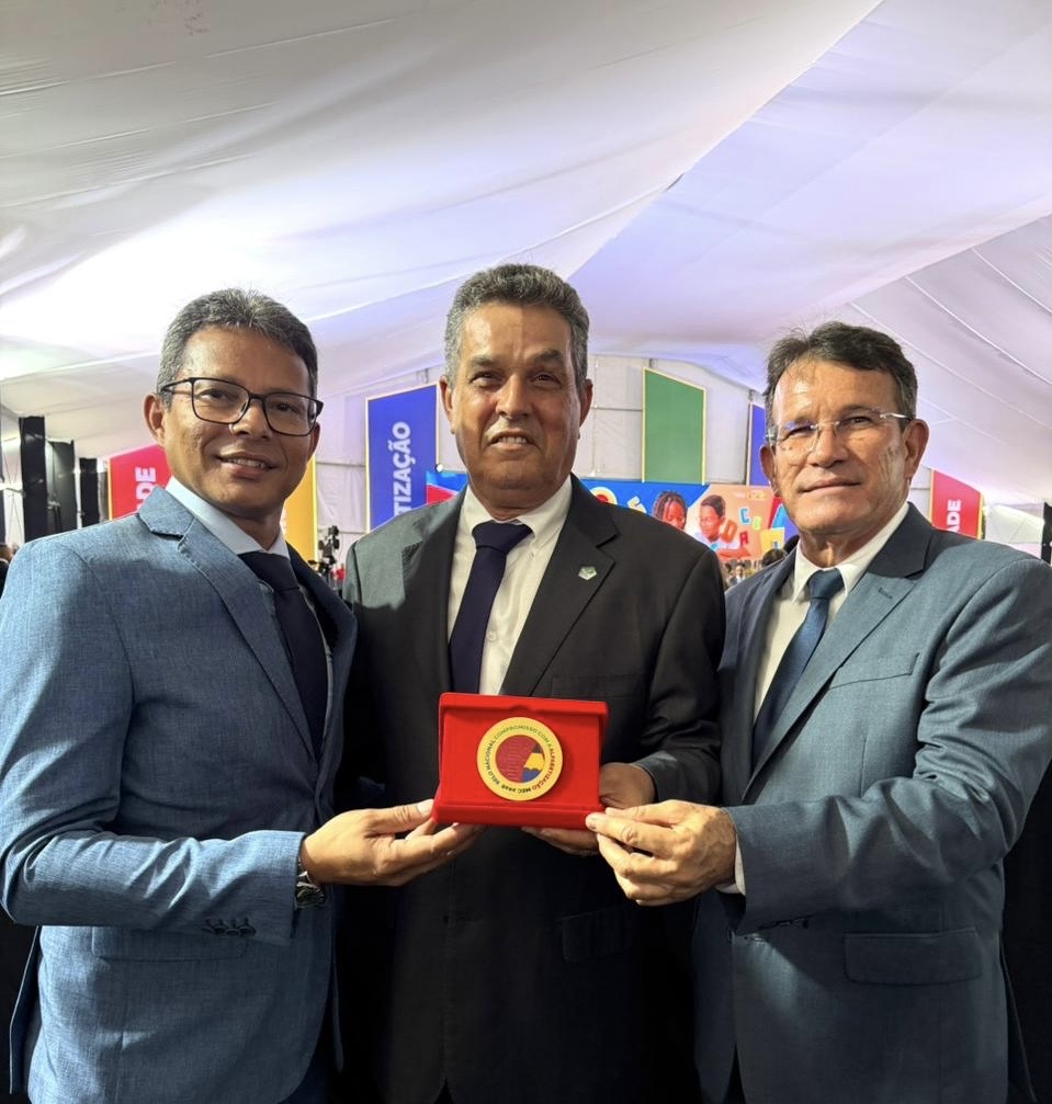 Nesta segunda-feira (23), o prefeito Neno Freitas, o vice-prefeito, Renato Purificação e o secretário Ednaldo Firmino, participaram em Brasília, da Cerimônia de Condecoração da 2ª edição do Selo Nacional Compromisso com a Alfabetização, conduzida pelo presidente Lula e pelo Ministro da Educação, Camilo Santana. Pelo segundo ano consecutivo, o município foi agraciado com a categoria “Ouro”.